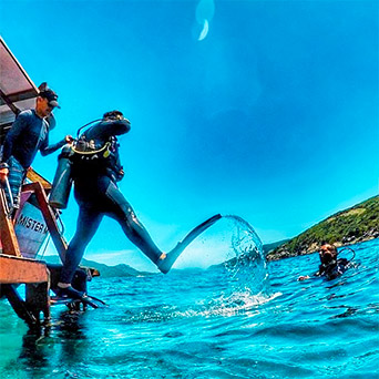 En el Curso de Buceo para Principiantes aprenderás los conceptos básicos del buceo. Las clases comienzan en aguas poco profundas y luego se avanza hacia aguas más profundas. Obtener la certificación de nivel básico es solo el comienzo. Podrás participar en nuestras excursiones, bucear con nosotros en Arraial do Cabo o donde quieras, y calificar para otros niveles de formación: Avanzado , Rescate , Divemaster e Instructor .